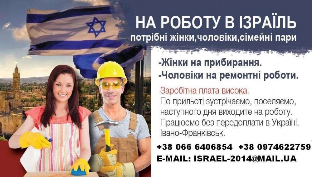 Робота для жінок, чоловіків, сімейних пар в Ізраїлі без передоплати в Україні за роботу.