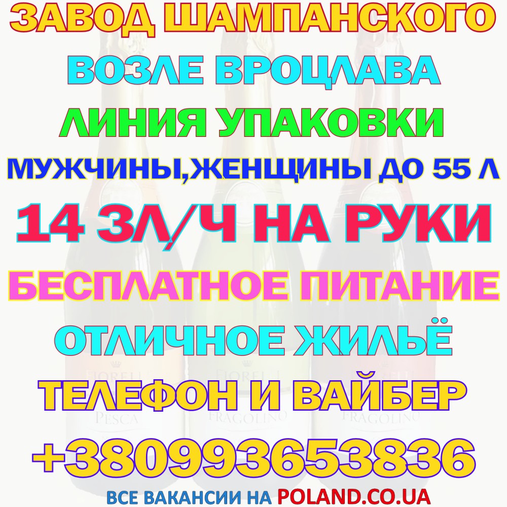 Требуются сотрудники на обслуживание автоматической линии на завод детского шампанского в г. Karwiniec, в 45 км от г. Вроцлав.