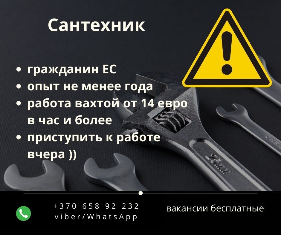 Сантехник 14-15 евро в час (для граждан ЕС)
