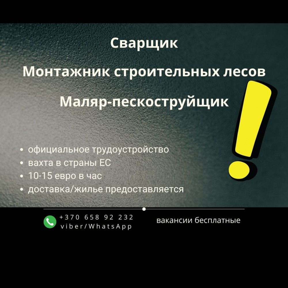 Литовская компания, имеющая 15-летний опыт в сфере судостроения, приглашает на постоянную работу квалифицированных специалистов для дальнейшей работы вахтовым методом в Нидерландах.