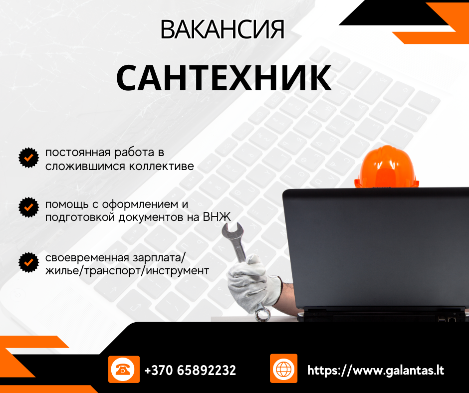 Приглашаем для постоянной работы квалифицированных сантехников в литовскую компанию UAB Galantas (юр. адрес: Eišiškių pl. 36, Vilnius)