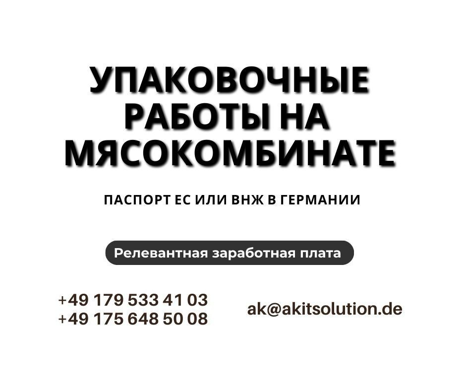 На мясокомбинат — в 45657 Recklinghaussen требуются работники (М|Ж|пары)