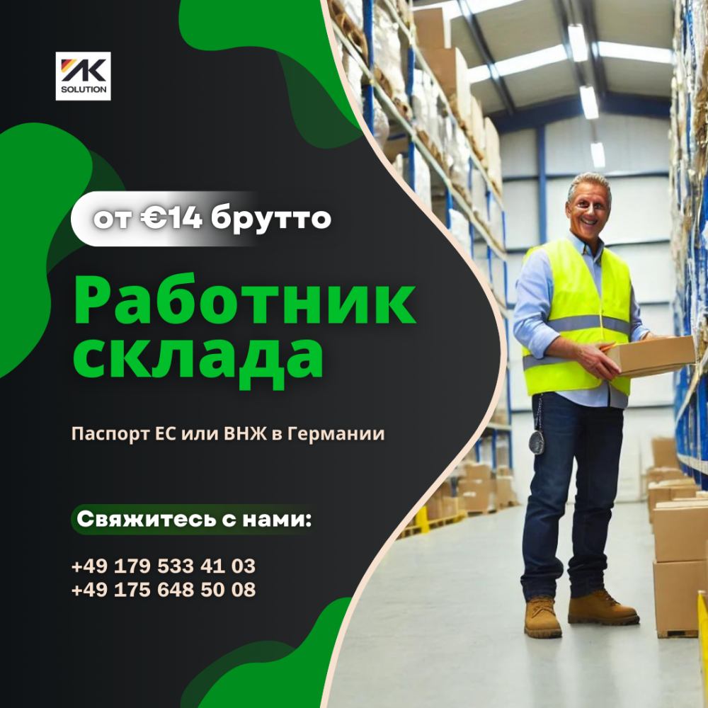 💰 Зарплата: 14 € брутто/час. Официальное трудоустройство с возможностью переработок.
