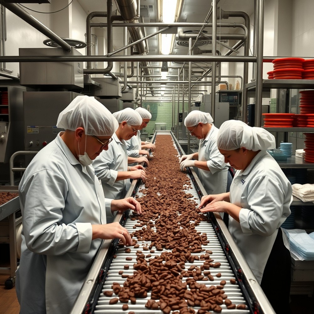 Работа на конвейере: сортировка и маркировка одежды.