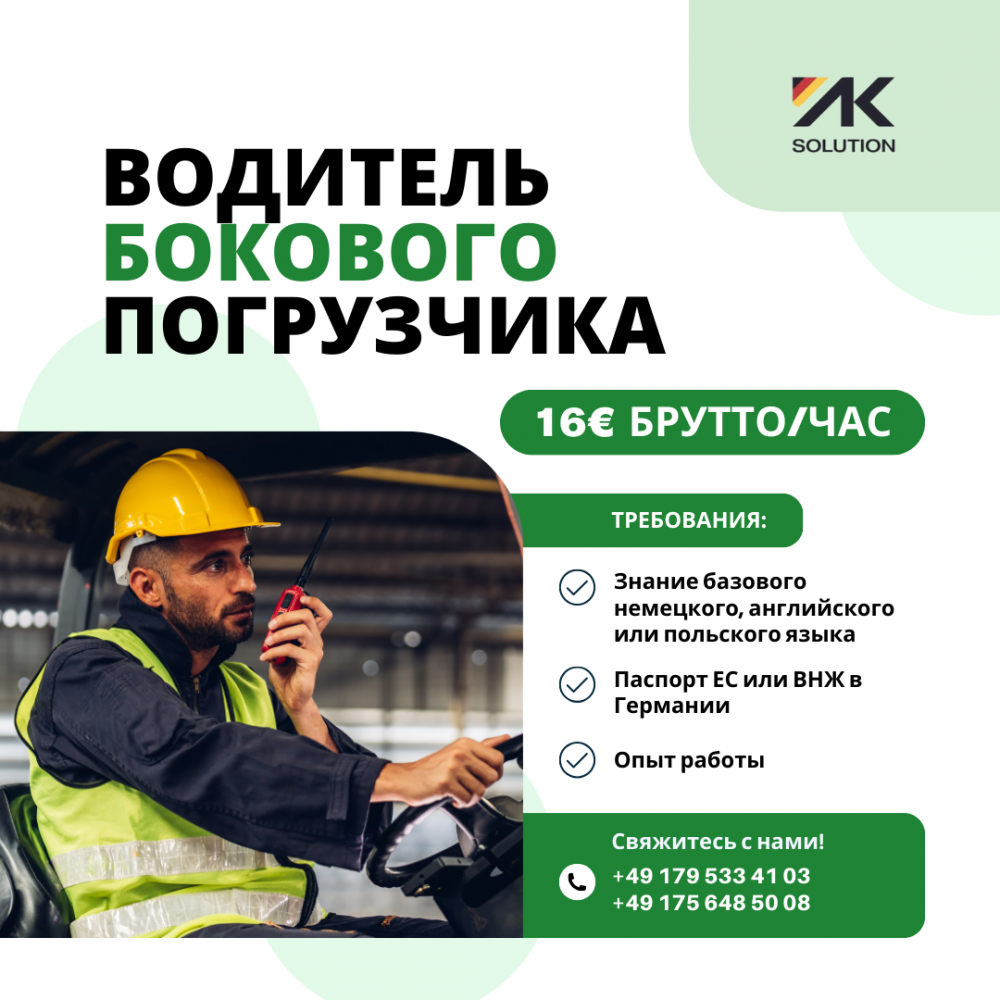 🚨 СРОЧНО! РАБОТА В ГЕРМАНИИ – ВОДИТЕЛЬ ПОГРУЗЧИКА (БОКОВОЙ / ВИЛОЧНЫЙ) 🚨