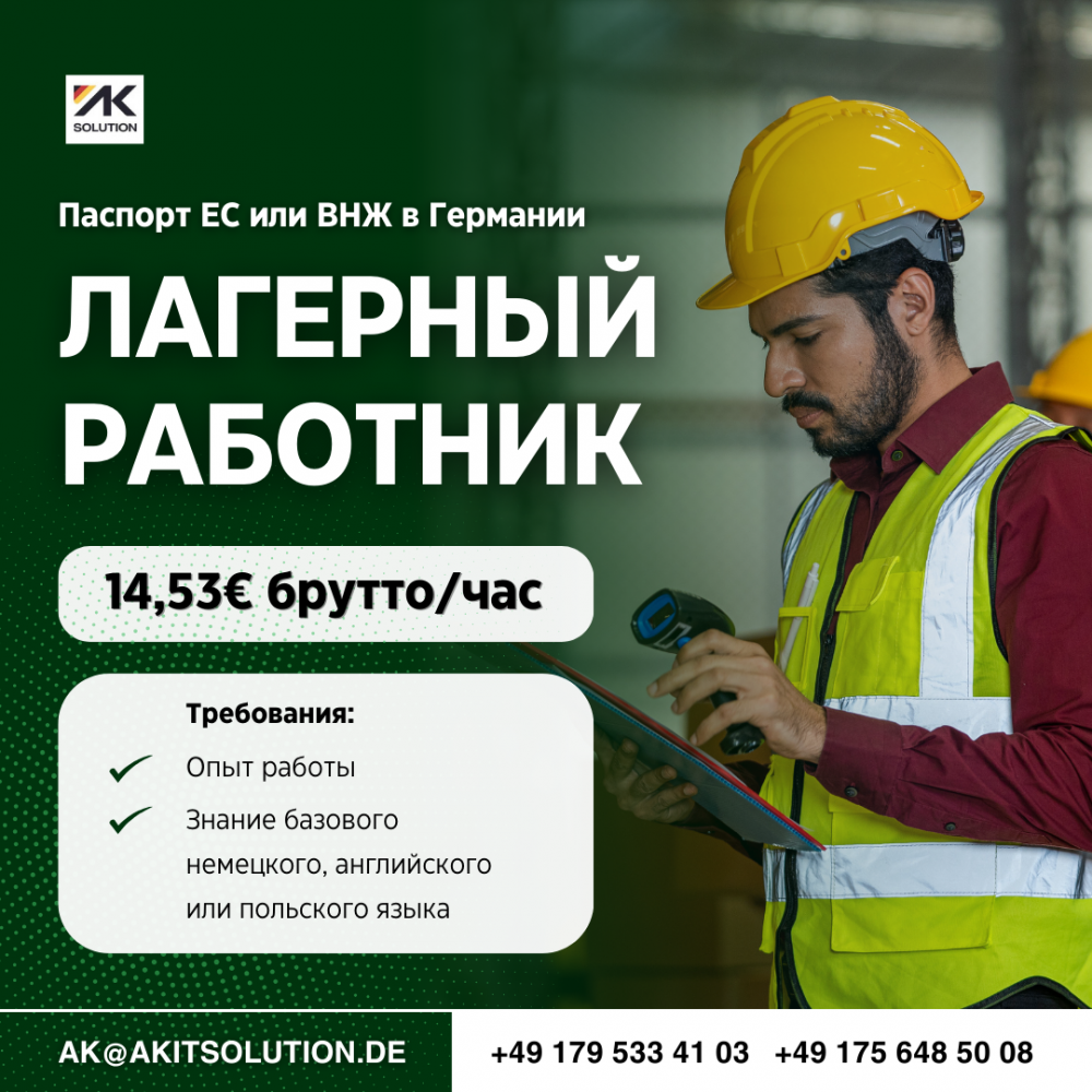 ✅ Работа на современном складе (Baumarkt, онлайн-товары)