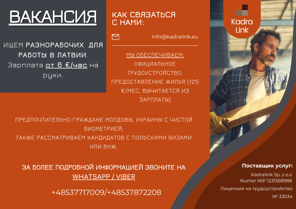 Рассматриваем также кандидатов из любых стран с польскими визами или ВНЖ.