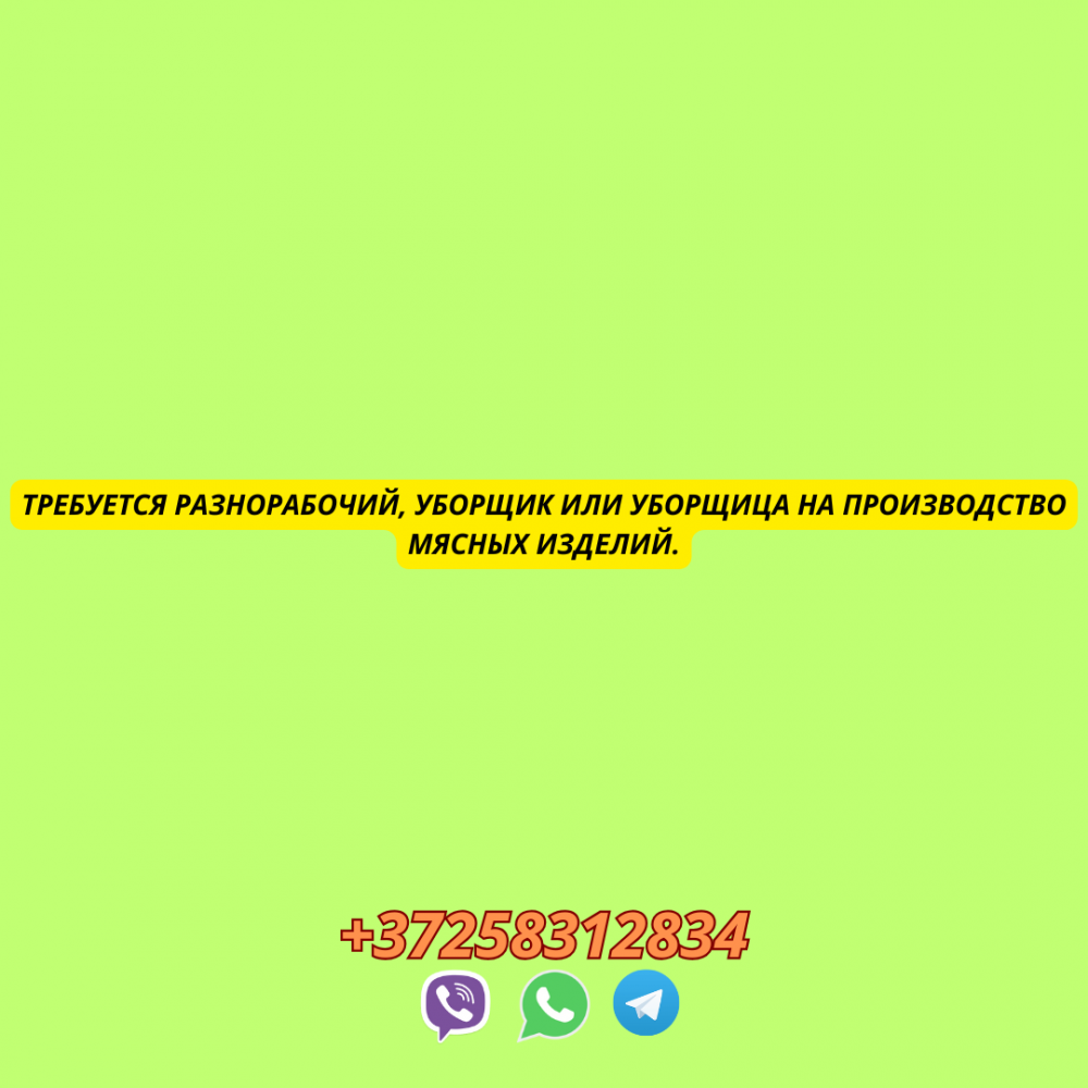 Требуется разнорабочий, уборщик или уборщицана производство мясных изделий.