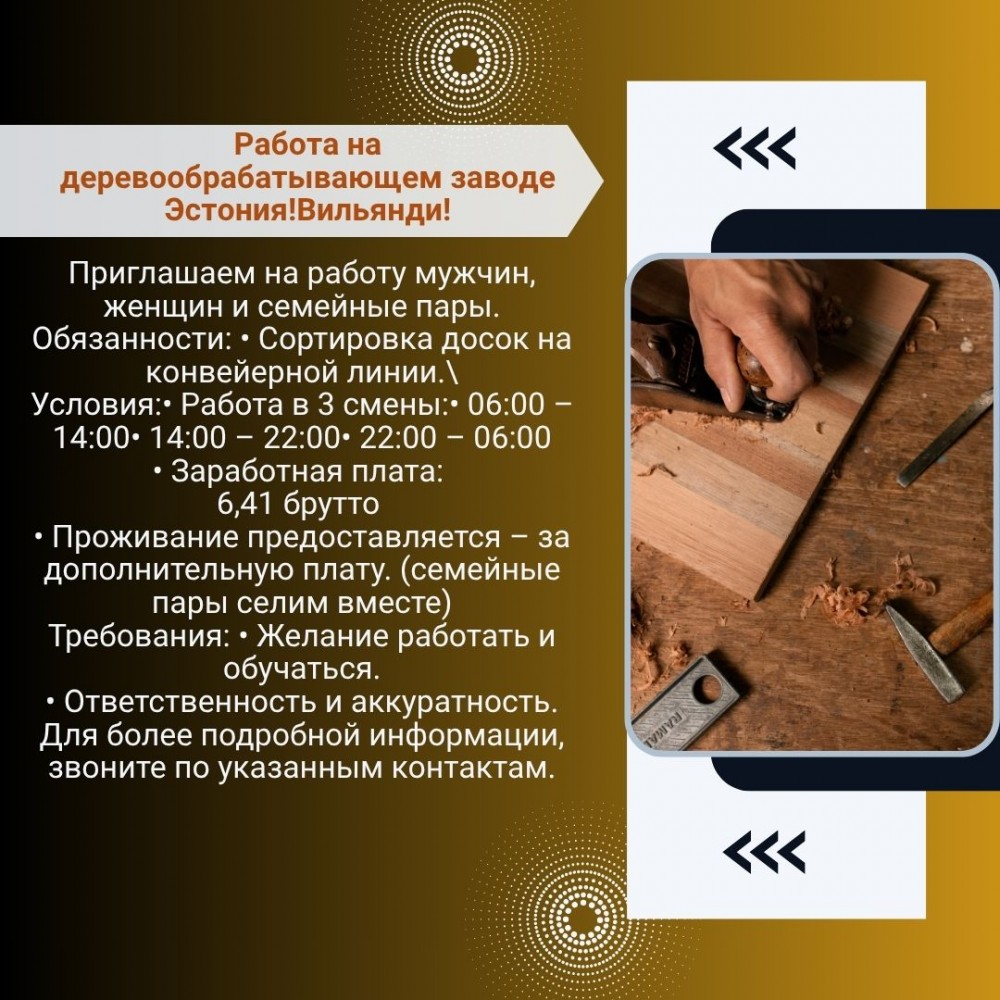 Условия:• Работа в 3 смены:• 06:00 – 14:00• 14:00 – 22:00• 22:00 – 06:00