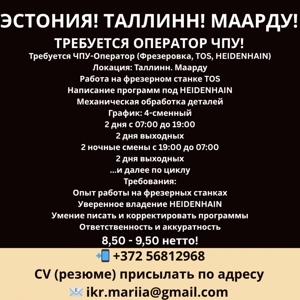 Требуется ЧПУ-Оператор (Фрезеровка, TOS, HEIDENHAIN)