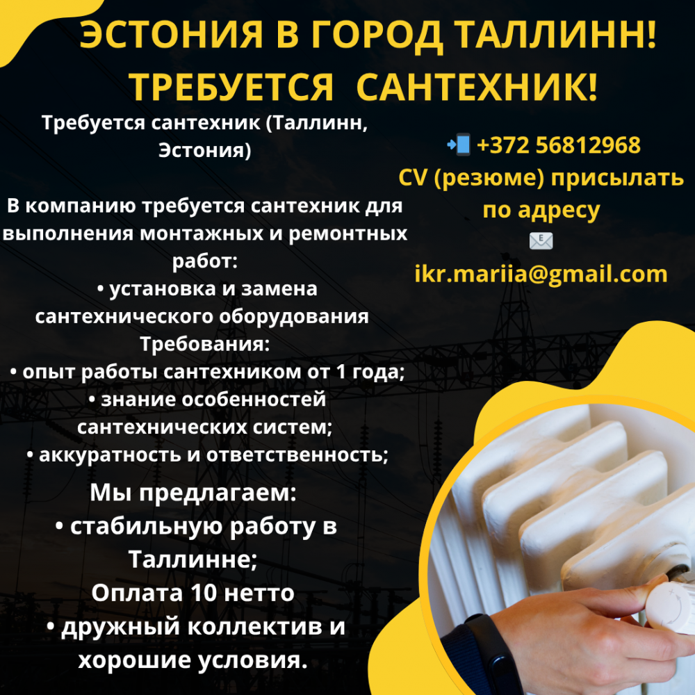 На объект пореновации жилых домовв Таллине требуетсясантехник.