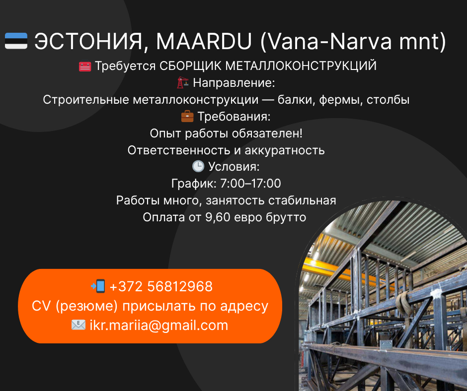🧰 Требуется СБОРЩИК МЕТАЛЛОКОНСТРУКЦИЙ