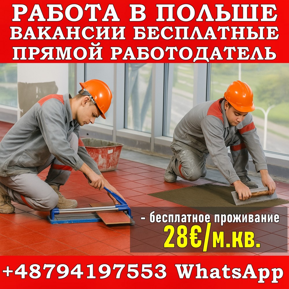 Нужны плиточники. 28 евро/м². Жильё бесплатно. Прямой работодатель