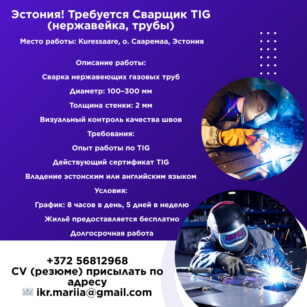 Требуется сварщик TIG