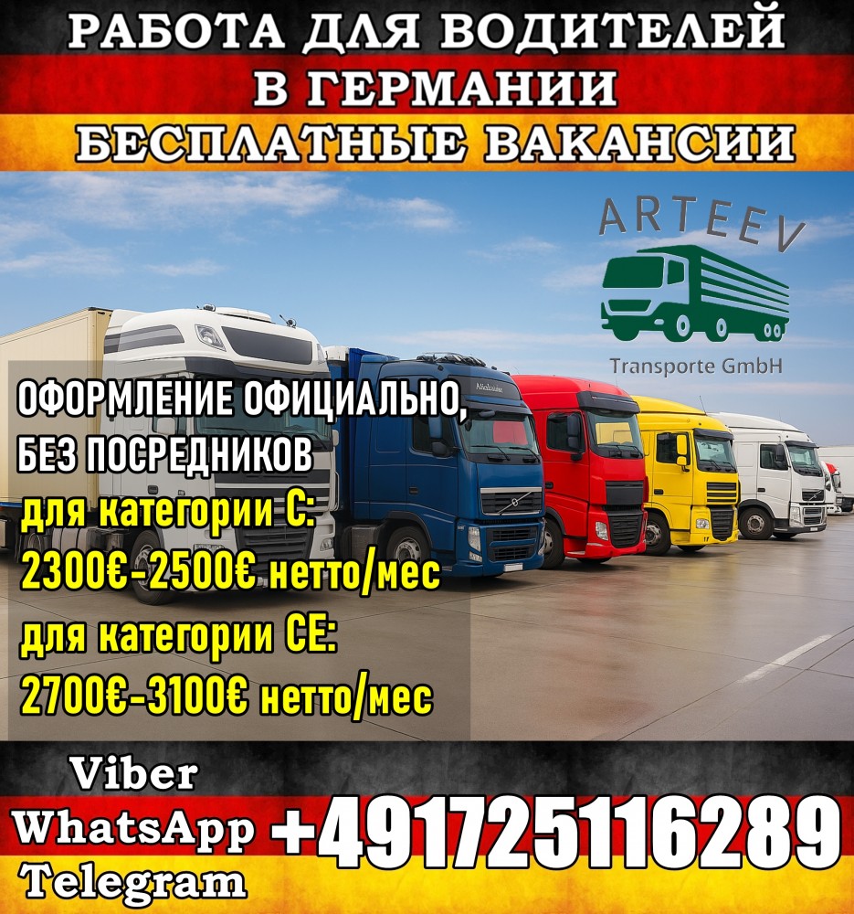 🚛 PAБОТА ДЛЯ ВОДИТЕЛЕЙ LKW (кат. C, CE) В РАЙОНЕ ГАННОВЕРА (ГЕРМАНИЯ) | АRTEEV TRANSPORTE GMBH 🇩🇪