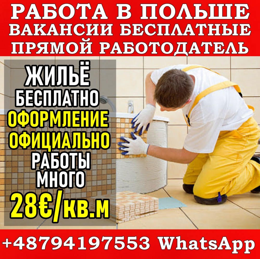 Вакансия Плиточник. Жильё бесплатно. Высокая зарплата. Прямой работодатель