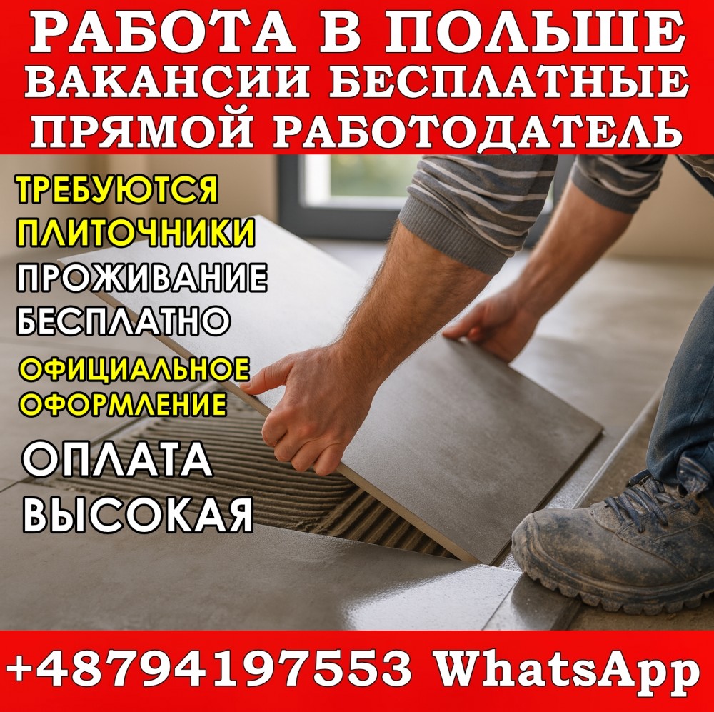 Требуются плиточник. Оплата высокая. Жильё бесплатно. Официально